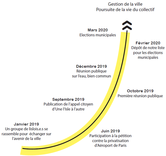 Partant de ce constat et des questions qui en découlent, le collectif « D’une l’ Isle à l’autre » s’est formé et a élaboré depuis plusieurs mois un projet, en vue de la constitution d’une liste pour les élections municipales.